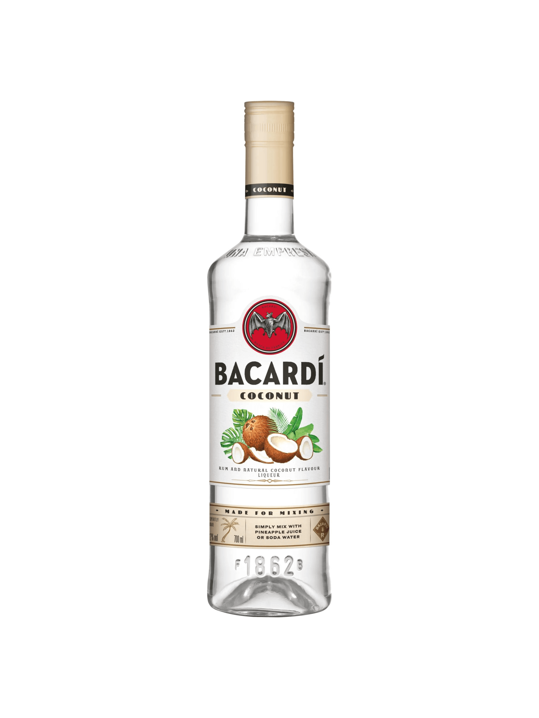 BACARDÍ Coconut offers the perfect blend of white rum and essence of real coconut. Expertly blended for intense flavour, this BACARDÍ rum spirit drink is ideal for easy-to-make cocktails that pack a flavourful punch. Simply mixing with pineapple juice makes a delicious tropical serve.