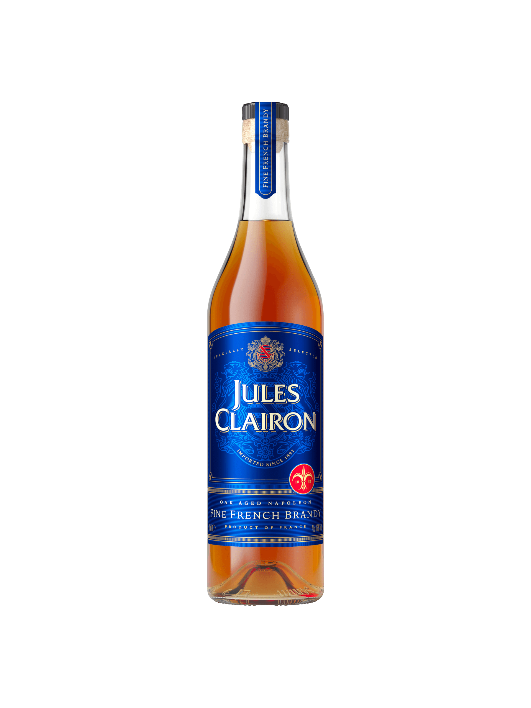 Jules Clairon Napoleon Fine French Brandy is a traditional Fine Brandy, aged for 12 months in hand-selected small oak casks to build character and round out the spirit.