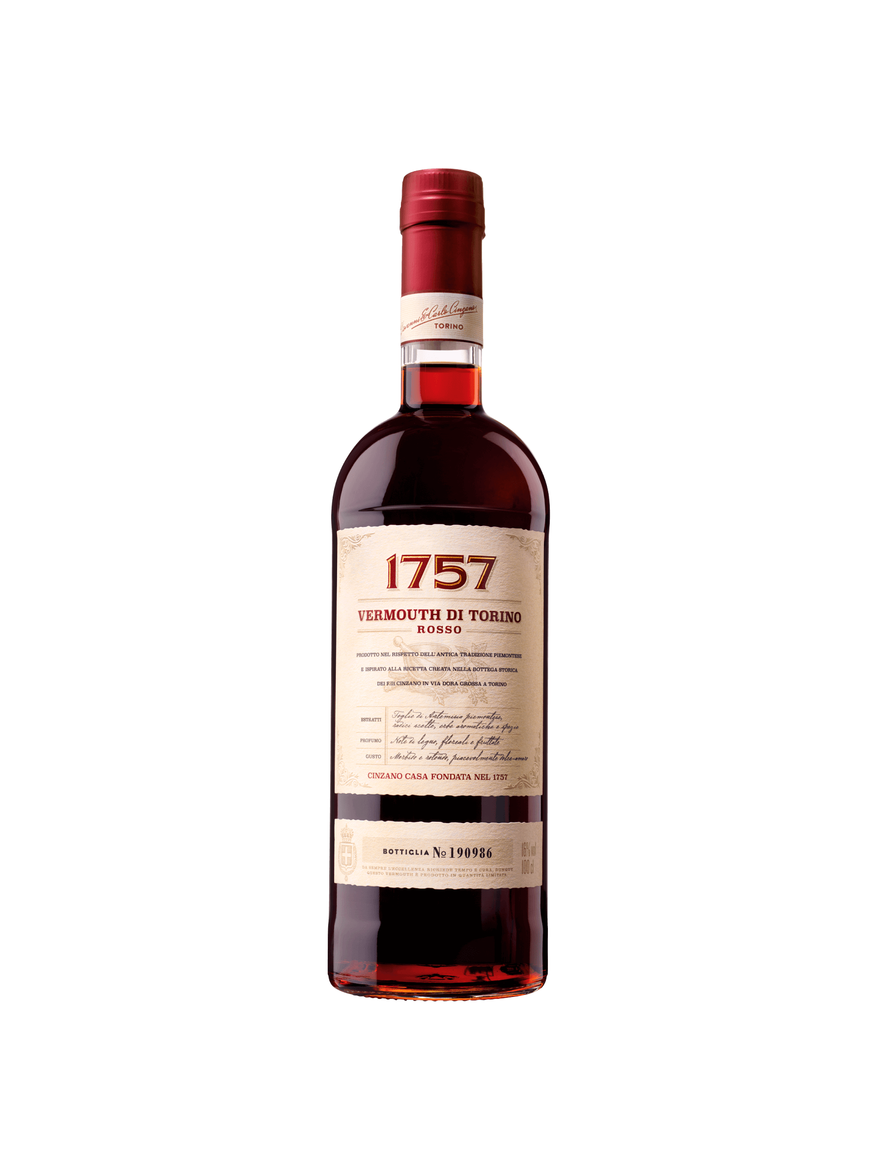 Nearly three centuries of experience & pursuit of excellence: that is the secret of 1757, the Vermouth di Torino that pays tribute to Casa Cinzano's founding year. From their origins in the bottega, shop, in via Dora Grossa, traditional techniques blend with modern know-how in a vermouth created for bartending. 1757 perfectly complements classic cocktails, (such as Negroni), while inviting imagination.
