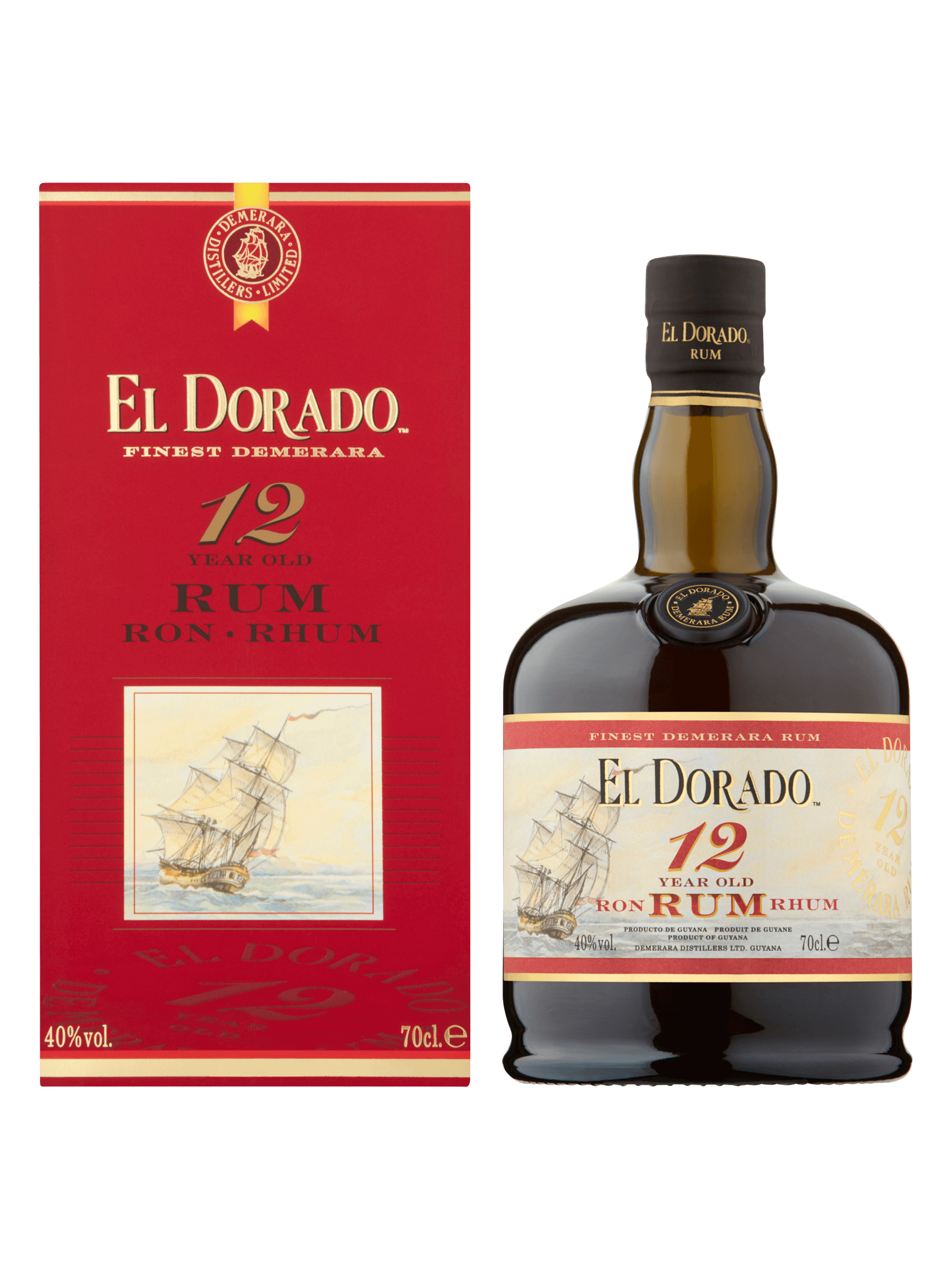 A True Aged Rum This superior demerara rum has been aged in oaken barrels for at least 12 years and is blended to perfection by our master blenders. It is exceptionally smooth and a delight to the most discerning drinker. This fine aged demerara rum is produced by Demerara Distillers Ltd., master distillers since 1670. Matured for at least 12 years in oak casks, this rum is hand-blended to achieve its uniquely smooth, rich, award-winning character. El Dorado 12 year old rum is best enjoyed straight or on the rocks.