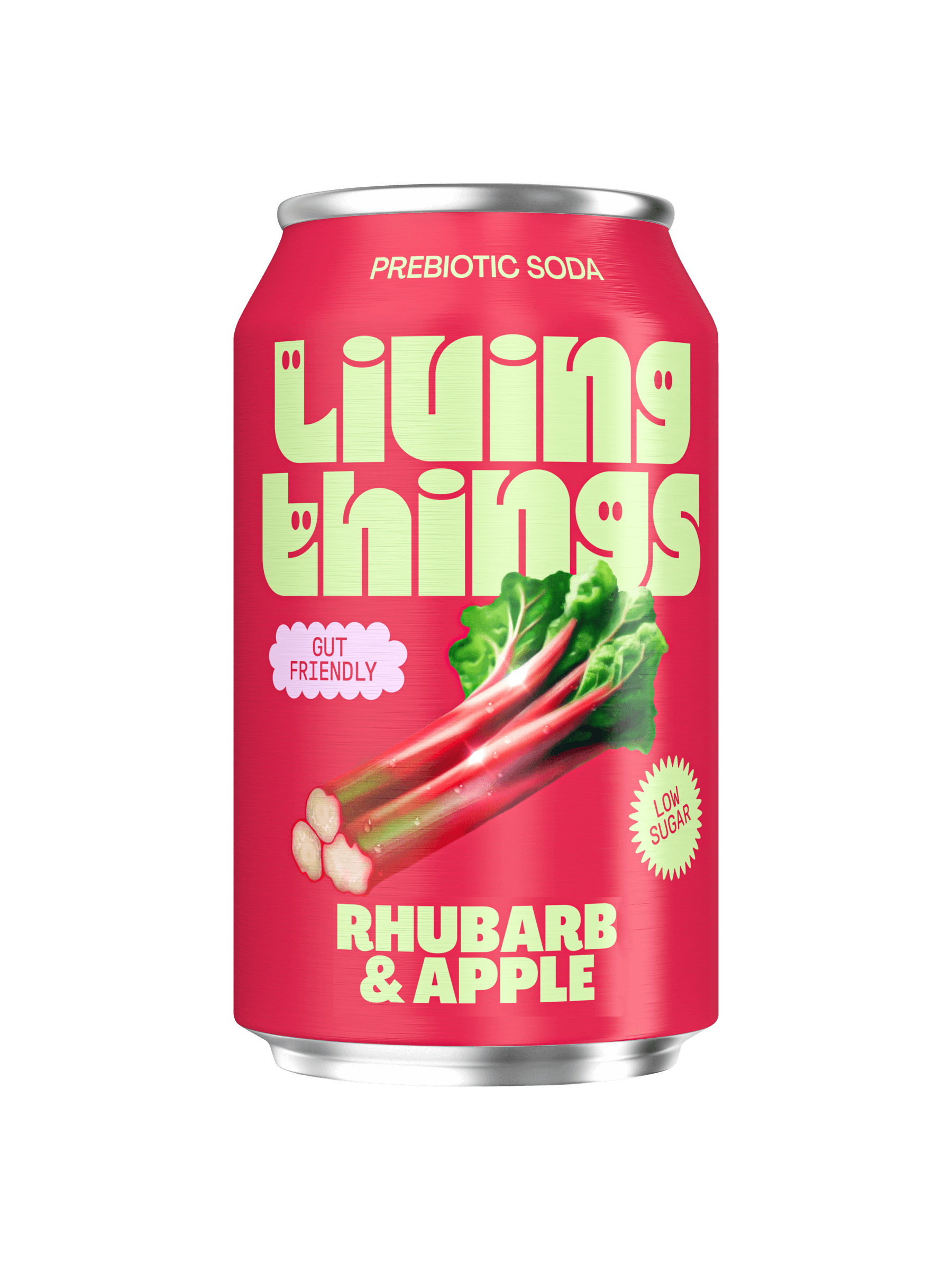 Lightly sparkling Rhubarb & Apple Prebiotic Soda bursting with belly-loving bubbles