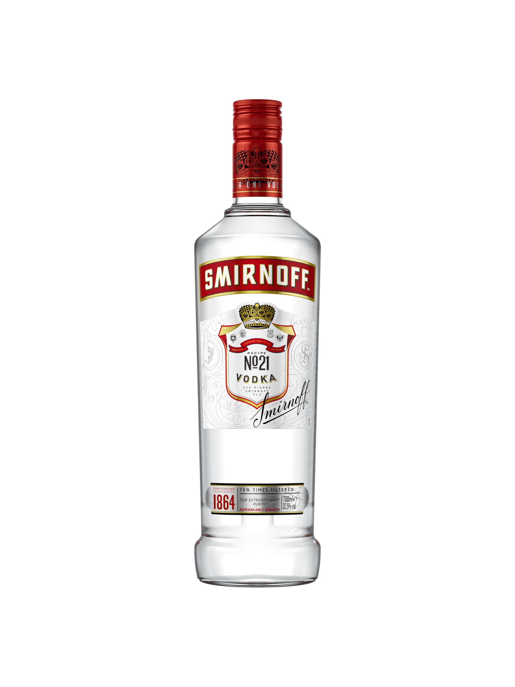 Smirnoff No. 21 - famously known as Red Label - is the world's favourite, most awarded and best-selling premium vodka. An exceptionally pure-tasting, smooth spirit with a clean palate, and the primary choice for a range of popular drinks. With countless years of heritage and unmatched quality, it is sold in over 130 countries. Founded in 1864, it gets triple distilled from a blend of different grains and filtered ten times through seven columns of charcoal for an exceptionally pure-tasting, smooth finish. Smirnoff No. 21 also makes a perfect aperitif such as the Espresso Martini - simply add 35ml Smirnoff, 25ml Espresso, 25ml coffee liquor, sugar syrup and cubed ice to a shaker and mix. Or if you prefer something more summery and refreshing, try 25ml of Smirnoff, the citrus fruit juice of your choice, soda water, ice cubes in a highball glass and garnish with citrus fruit wedges. Smirnoff is ideal for making delicious drinks at home. As such a pure and versatile liquid, it is ideal for you to experiment and create your own cocktails. There is vodka, then there’s Smirnoff.